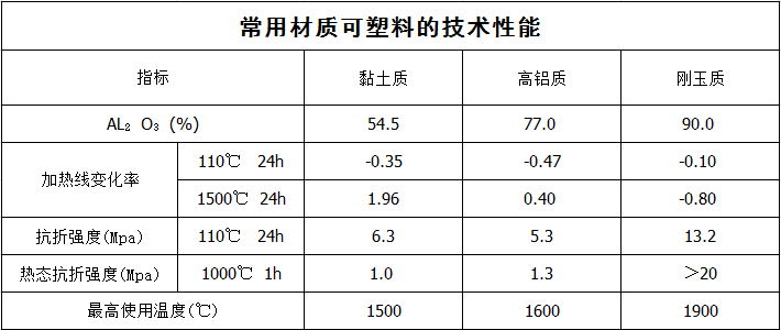 耐火可塑料是由粉粒状物料与可塑黏土等结合剂和增塑剂配合,加少量水分,经充分混练,所组成的一种呈硬泥膏状并在较长时间内保持较高可塑料的不定型耐火材料。【点击详情】